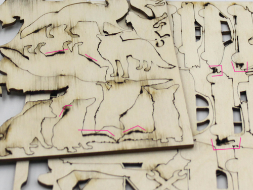 Zbyt duża liczna detali na bardzo małym obszarze może doprowadzić do nadpalenia sklejki.