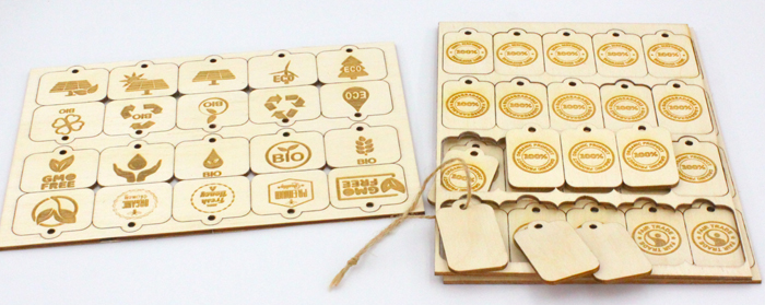 Zawieszki ze sklejki na butelki oraz zawieszki ECO.