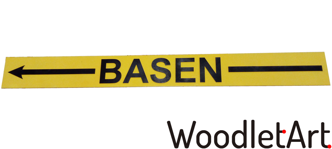 Żółta baza jest wykonana z 5mm sklejki a napis i strzałki zostały wycięte ze sklejki 3mm.
